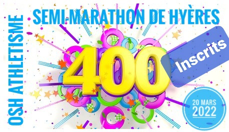 Les inscriptions sur le semi-marathon de Hyères s’accélèrent … Nous venons de passer la barre des 400 dossards sur le semi marathon (436 exactement aujourd’hui) sur les 800 disponibles. Il semble que nous serons complet avant le 20 Mars 2022 : date de l’épreuve. Ne tardez pas à vous inscrire si vous souhaitez participer à…
