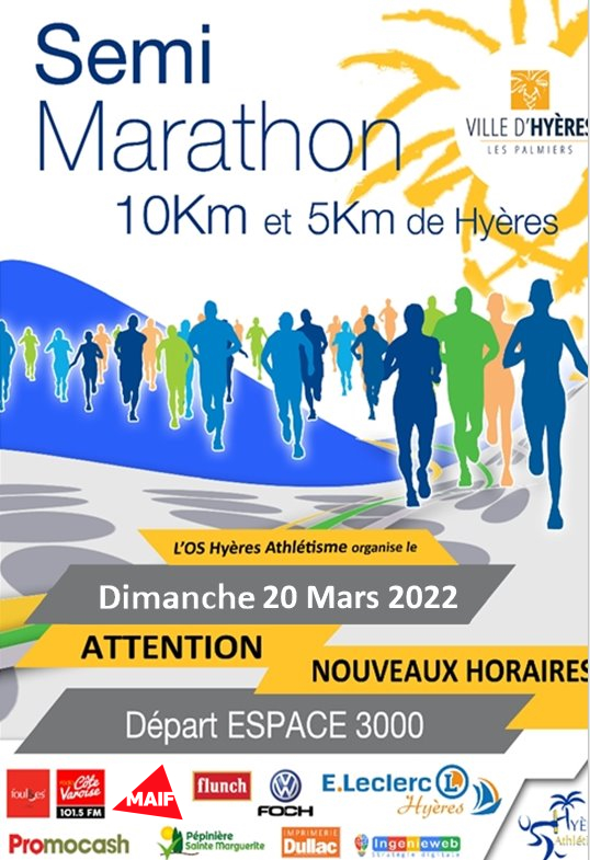 Nous sommes à moins de 2 mois du dimanche 20 Mars 2022 : date du semi-marathon de Hyères. Il vous reste donc moins de 60 jours pour vous inscrire.( INSCRIPTIONS…