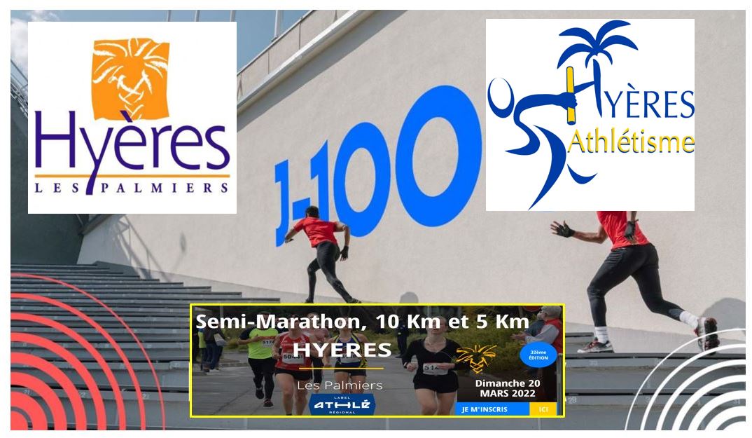 Nous sommes à J-100 du Semi-marathon de Hyères 2022 Il se déroulera le dimanche 20 Mars 2022 Nous sommes à plus de 10% d’inscriptions sur les 1800 dossards proposés N’attendez…